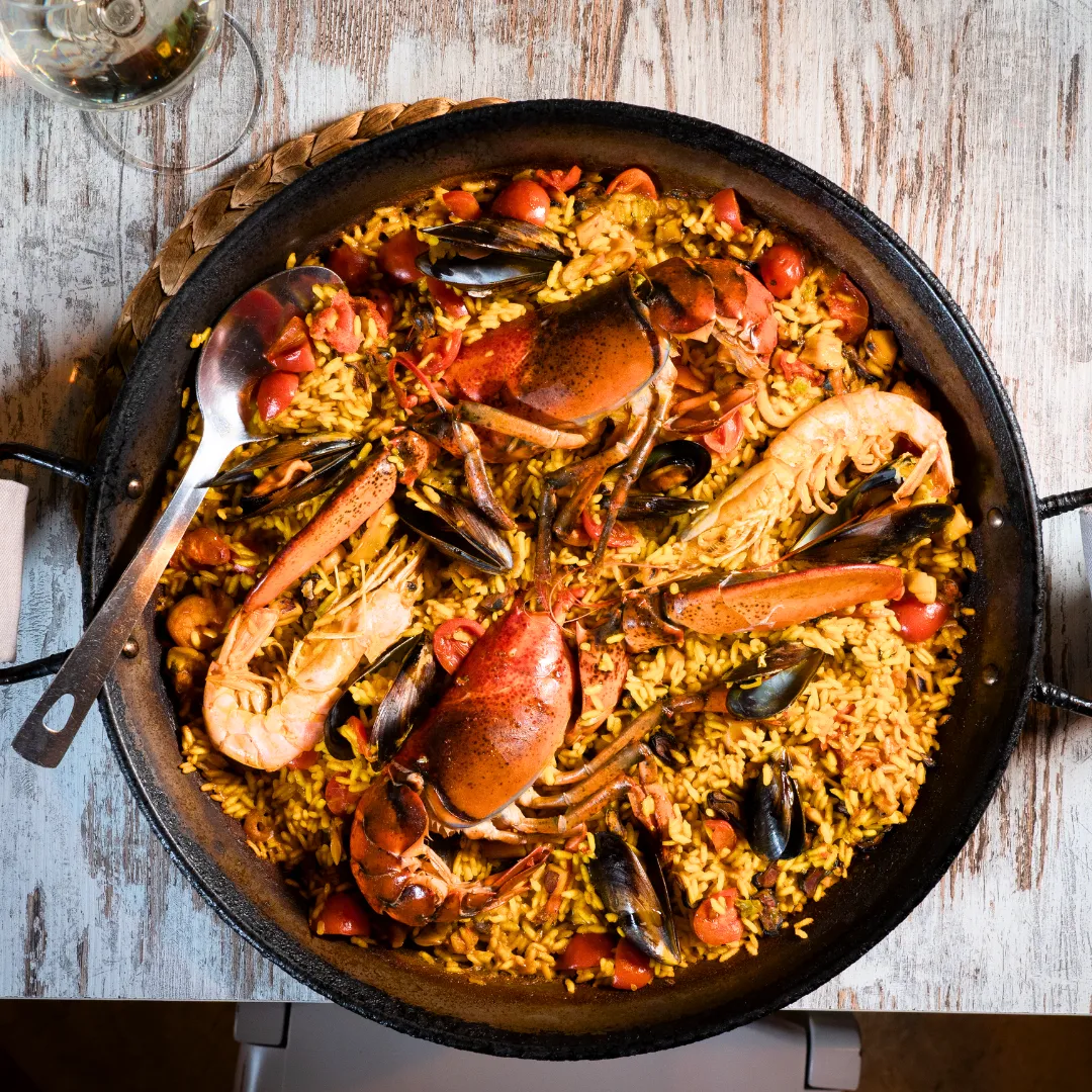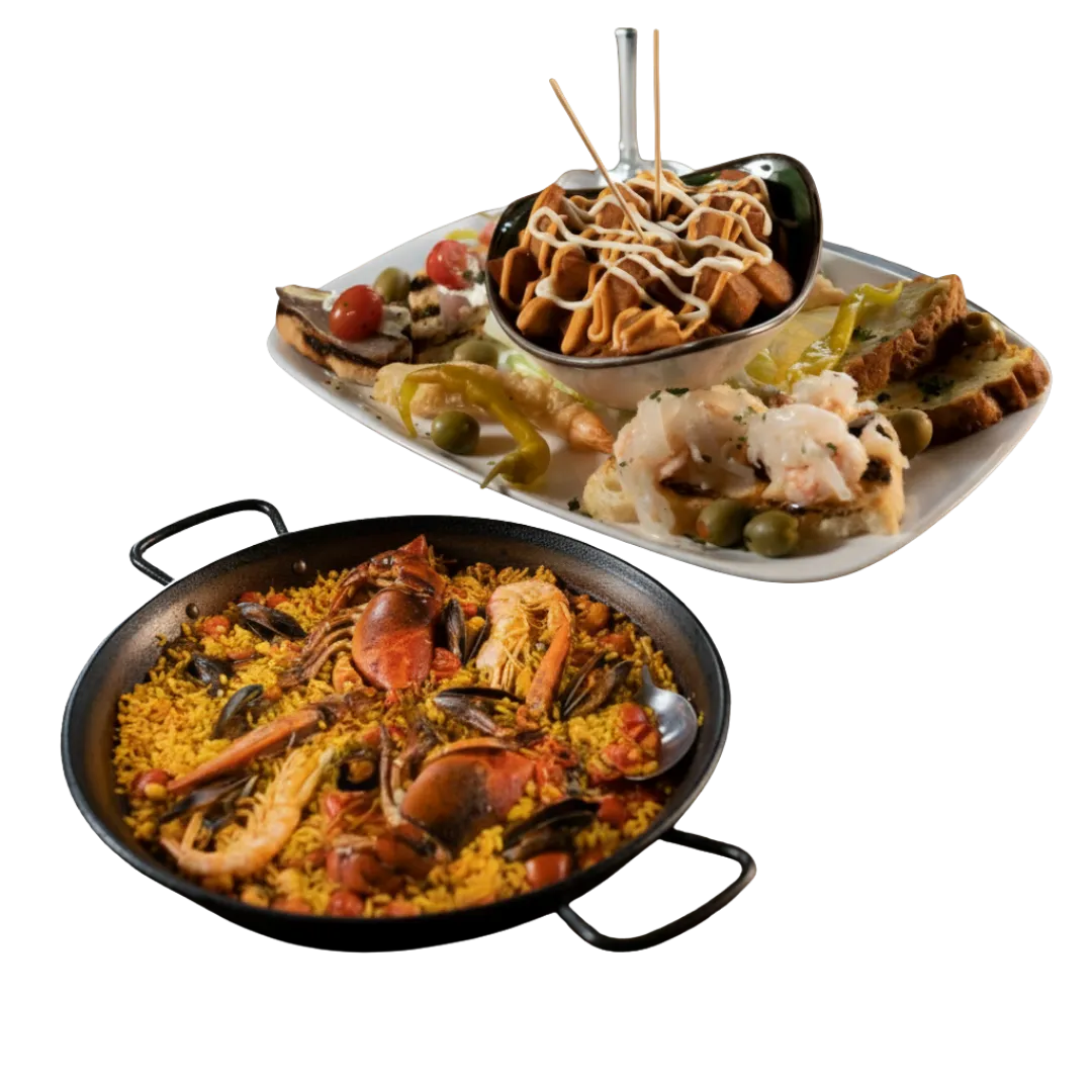 Cucina spagnola autentica: Paella a vista, tapas espresse, pesce fresco e sapori mediterranei.